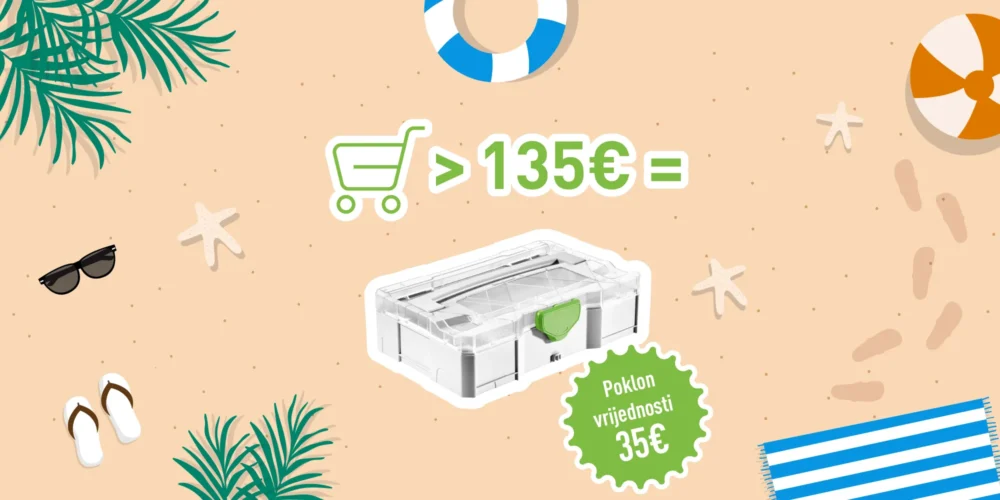 Svaku kupnju preko 135€ nagrađujemo odličnom Festool Systainer T-LOC SYS-MINI 1 TL TRA kutijom vrijednosti 35,03€.